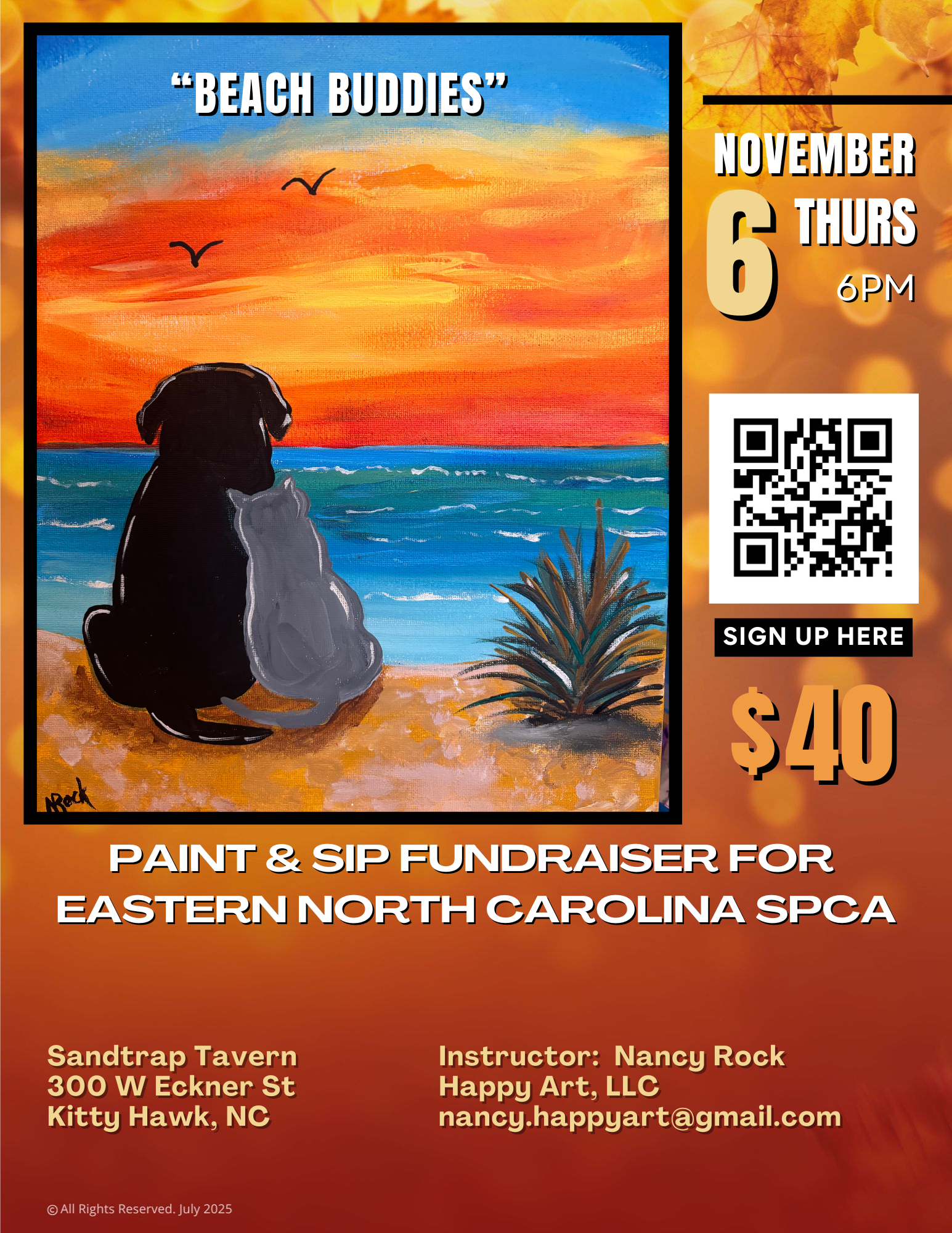 Join us for a paws-itively fun evening at Sandtrap Tavern on Thursday, November 6th at 6:00 PM for a heartwarming Paint & Sip Fundraiser supporting the Eastern North Carolina SPCA!