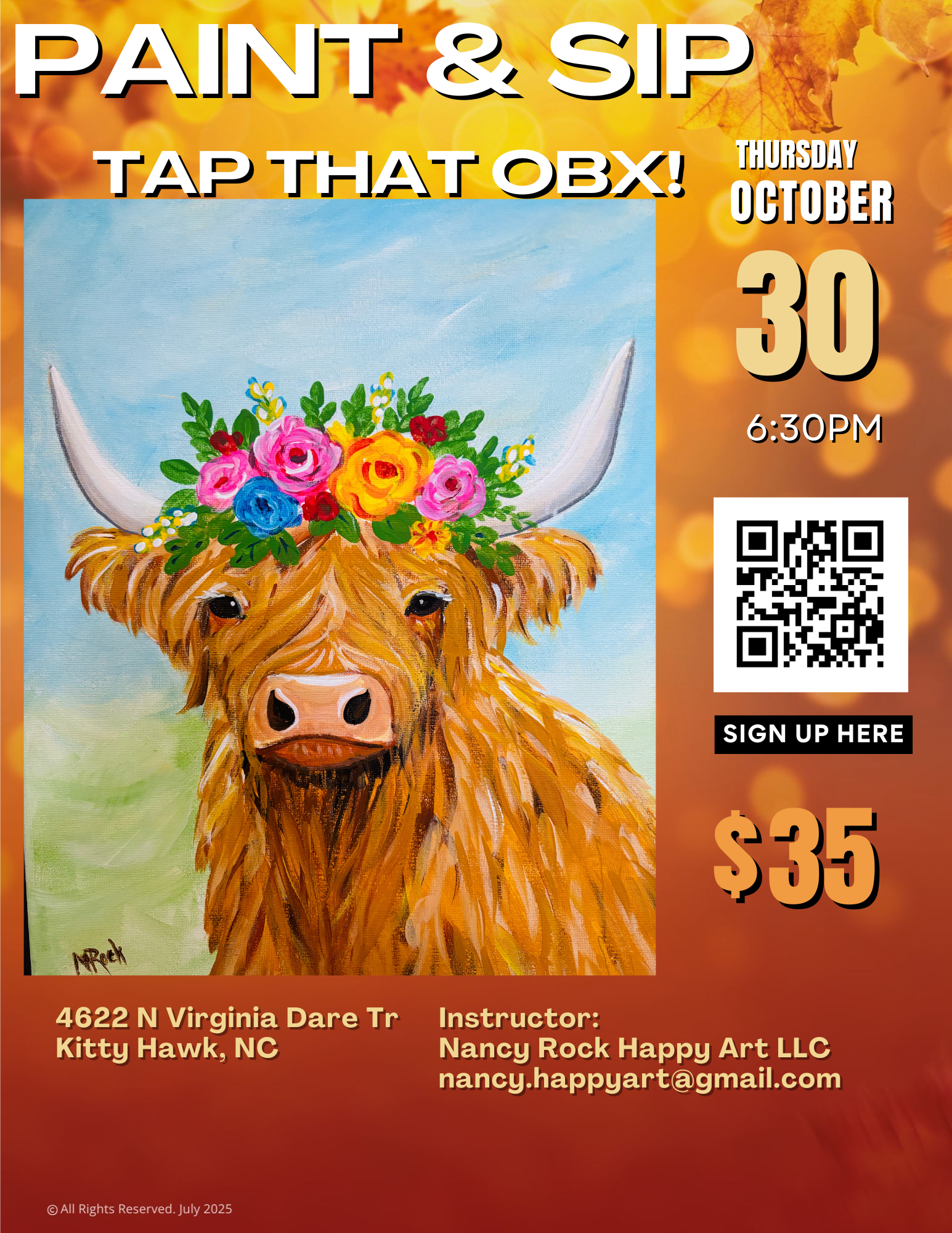 "Heidi the Highland Coo" Paint & Sip: Thursday, Oct 30 at Tap That OBX